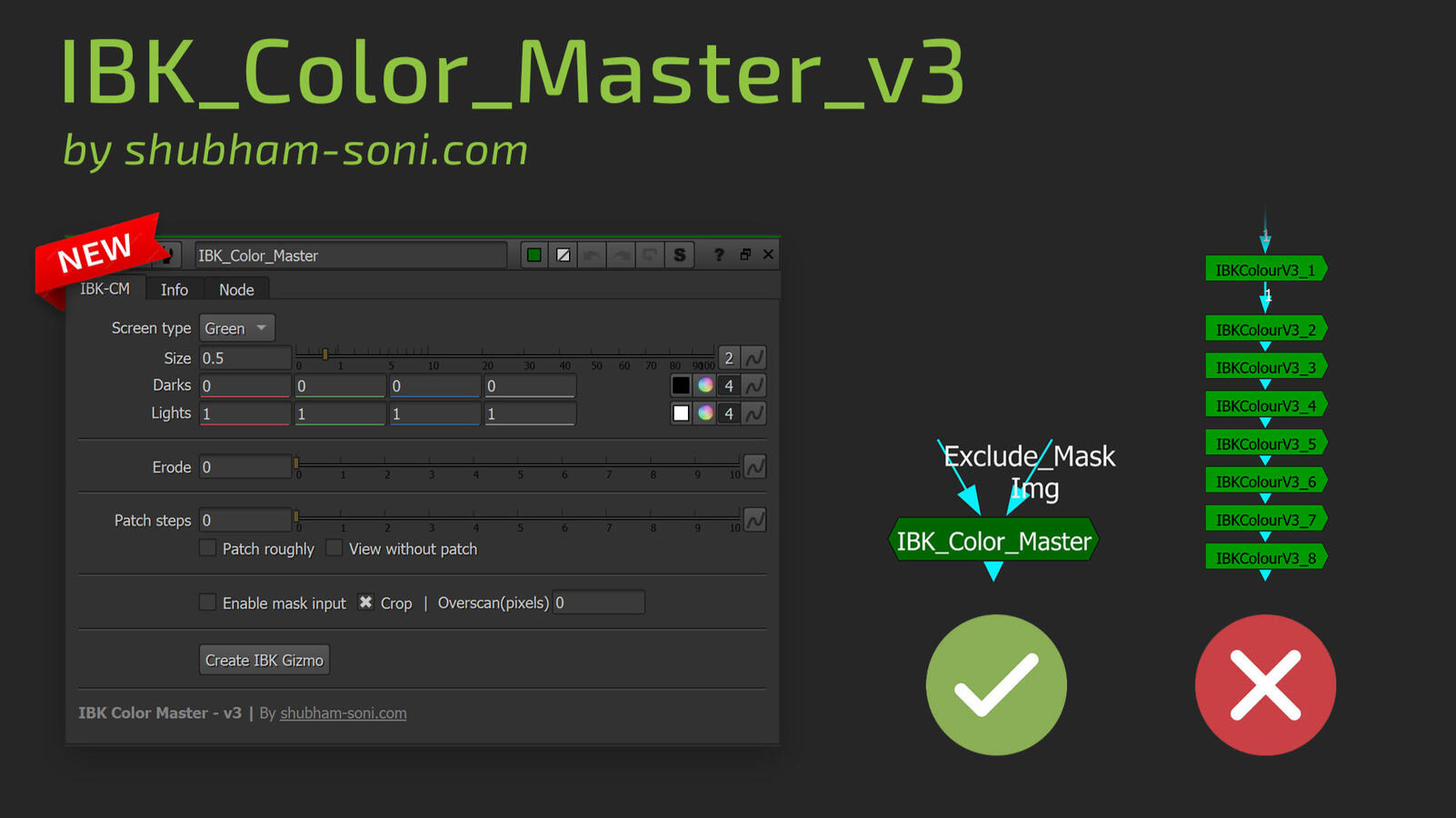 - One-Click IBK Gizmo Creation: Added a little time-saving "Create IBK Gizmo" button. It automatically create the IBKGizmo node, connects inputs correctly, and sets screen color same as IBK Color Master for quicker setup.